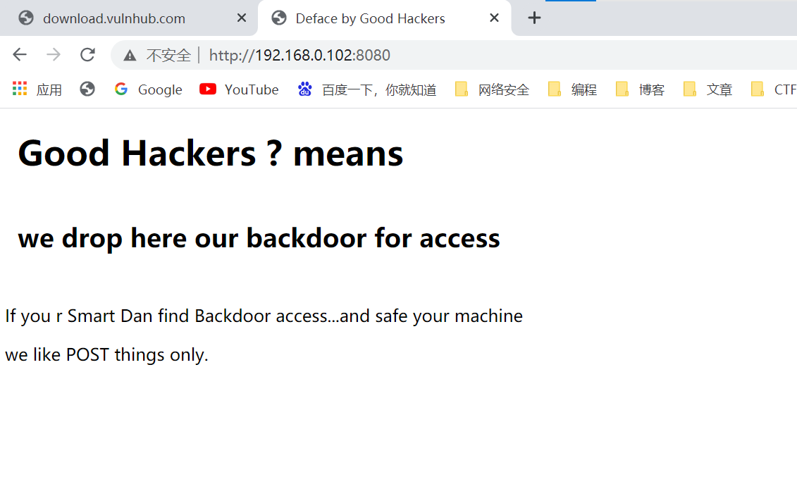 访问后,只有一句话说是假的后门,检查网页源码也没有提示