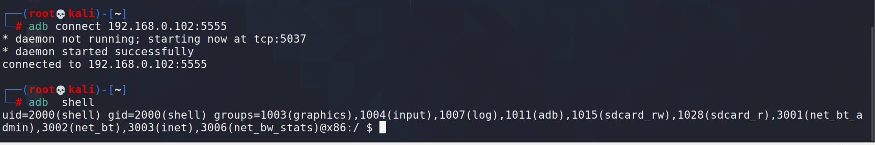 └─# adb connect 192.168.0.102:5555